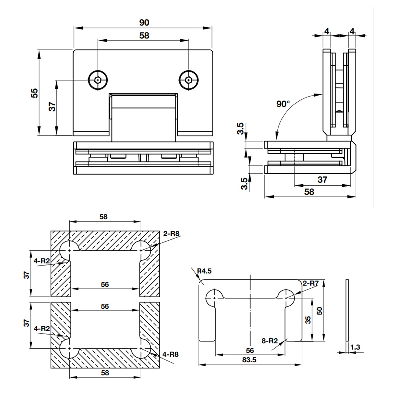 Bản lề kính-kính 90 độ BAUMA 981.77.951