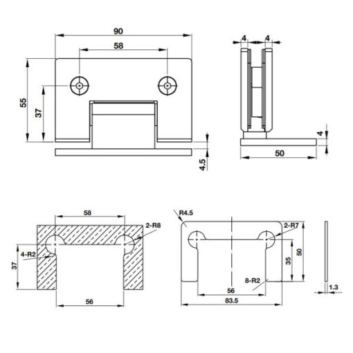 Bản lề kính-tường 90 độ BAUMA 981.77.953