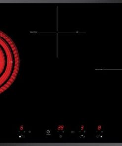 Đây là một model bếp từ có thiết kế sang trọng, tinh tế với 2 vùng nấu từ đặt ở bên phải và 1 vùng nấu hồng ngoại đặt ở bên trái