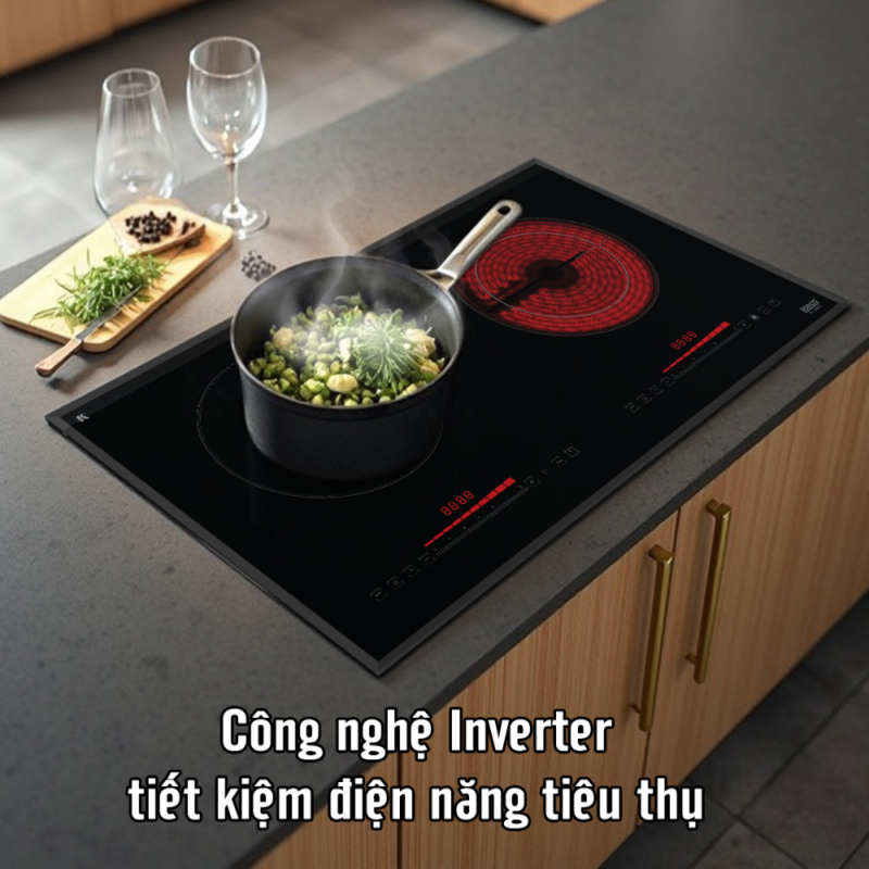 - Ứng dụng công nghệ biến tần Inverter tiên tiến, bếp vận hành ổn định, kiểm soát công suất chính xác, giảm thất thoát nhiệt và tiết kiệm đến 35% điện năng so với các dòng bếp truyền thống.