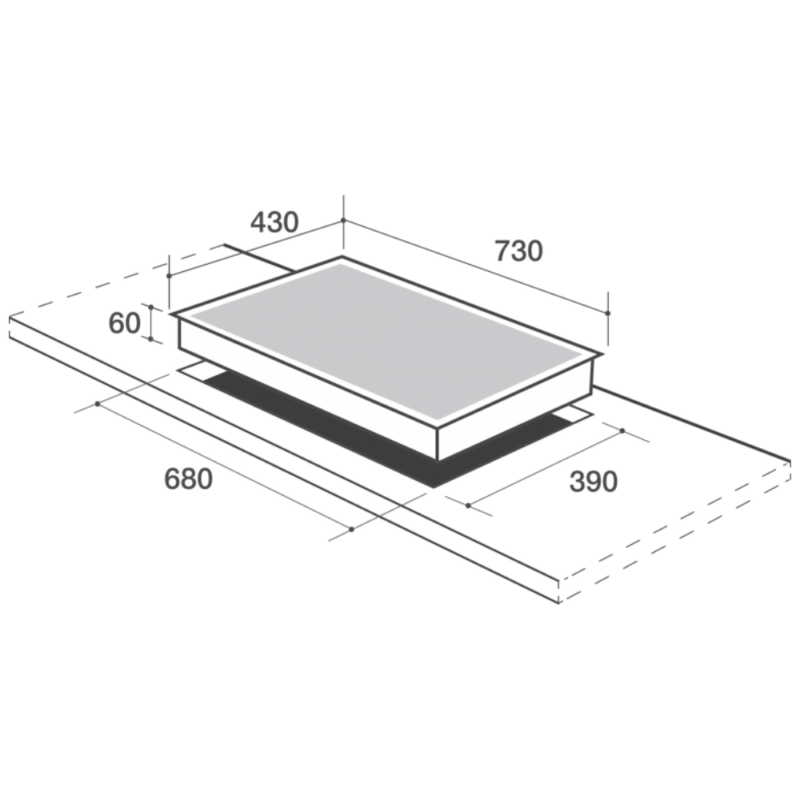 - Kích thước khoét đá: 675 × 395 mm