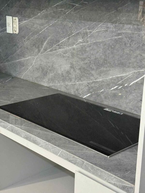Thiết kế bếp đẹp, sang, mặt kính đẹp sáng bóng, dễ lau, không trầy xước. Đặt âm bàn nhìn bếp gọn hẳn, căn bếp hiện đại hơn hẳn