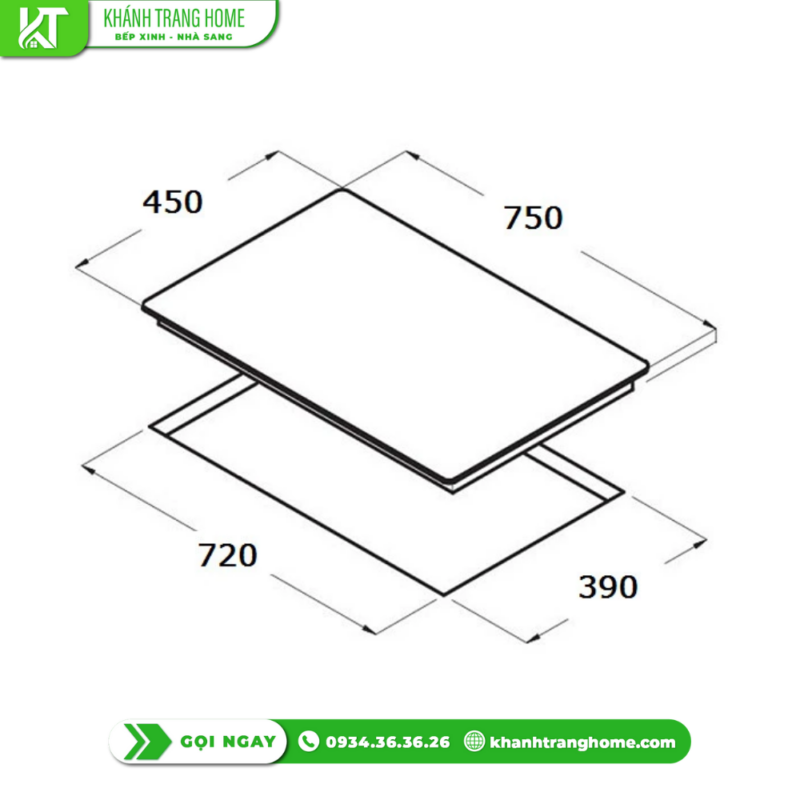 - Kích thước bếp (DxRxC): 750 x 450 x 60 mm