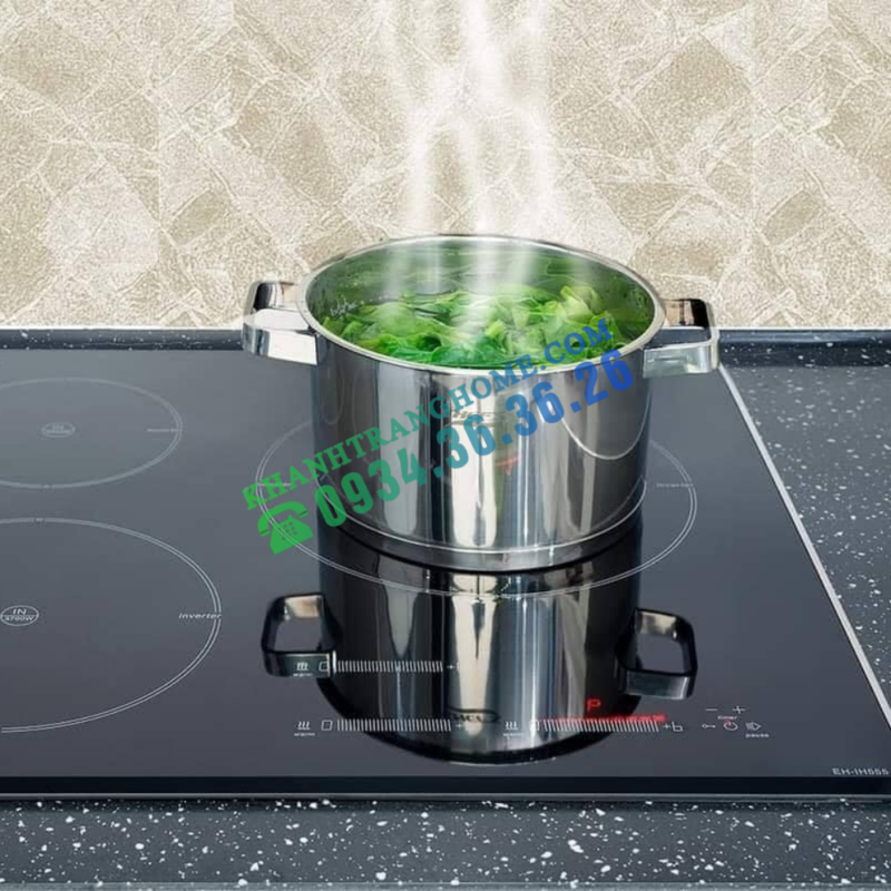 - Về công nghệ, EH-IH555 được trang bị Inverter thông minh, giúp bếp vận hành ổn định, kiểm soát nhiệt chính xác và tiết kiệm điện năng hơn so với các dòng bếp từ thông thường. Tính năng tự động chia sẻ công suất (Power Management) giữa 3 vùng nấu không chỉ đảm bảo bếp hoạt động an toàn mà còn phù hợp với hệ thống điện dân dụng tại Việt Nam.