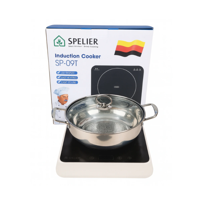 - Bếp từ đơn Spelier SP-09T là lựa chọn phù hợp cho những ai cần một thiết bị nấu nướng nhỏ gọn, mạnh mẽ và dễ sử dụng. Với thiết kế bếp để nổi hình vuông hiện đại, sản phẩm dễ dàng bố trí trong nhiều không gian khác nhau, từ căn bếp gia đình, phòng trọ cho đến nhà hàng, quán ăn. Kiểu dáng tối giản nhưng tinh tế giúp bếp vừa tiện dụng vừa đảm bảo tính thẩm mỹ.