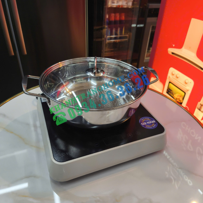 - Nồi inox đáy từ đi kèm cao cấp: Sản phẩm đi kèm nồi inox đáy từ kích thước lớn, thiết kế sâu và chắc chắn, phù hợp cho nhiều món như nấu lẩu, kho, xào, chiên. Đáy nồi bắt từ nhanh và đều, đặt lên bếp rất cân đối, tăng tính thẩm mỹ cho gian bếp.