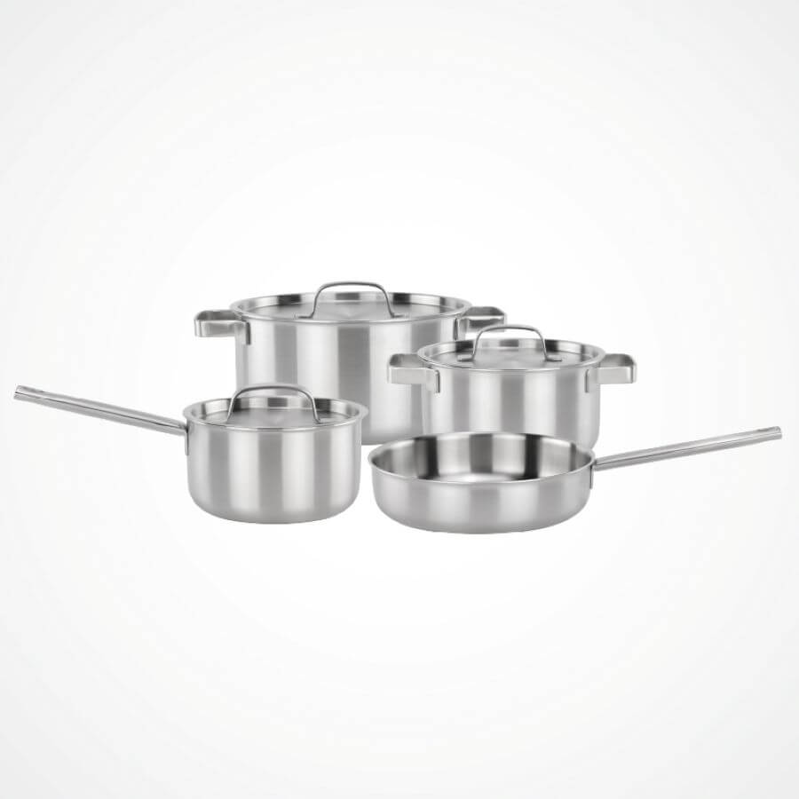 - Một điều dễ nhận thấy là việc nấu ăn trở nên trơn tru hơn nhờ kích thước các nồi, chảo, quánh cân đối với nhu cầu gia đình — không quá lớn gây lãng phí năng lượng, không quá nhỏ khiến phải nấu nhiều mẻ. Việc chảo và nồi có thể xếp chồng gọn gàng cũng giúp tiết kiệm không gian kho chứa.