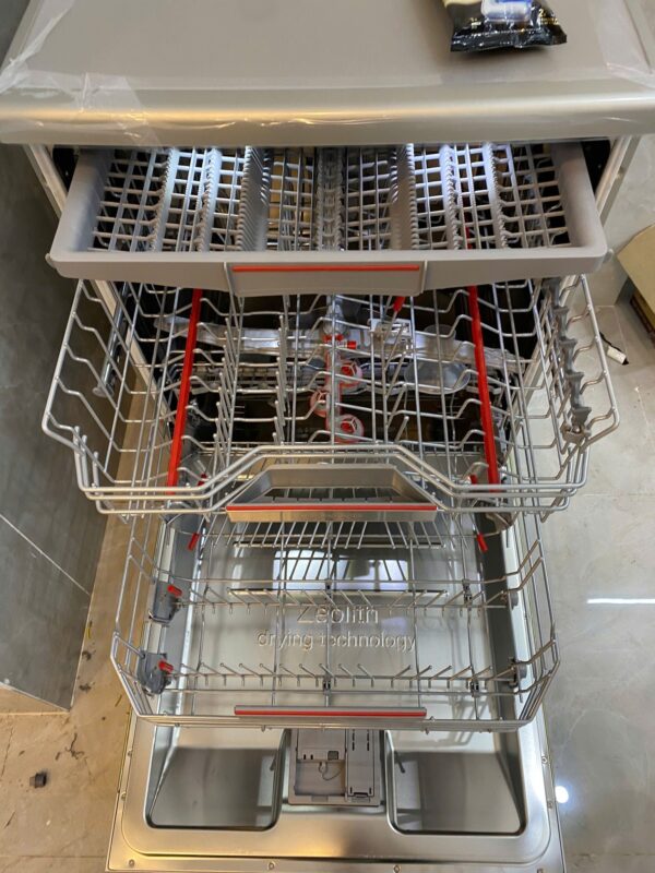 - Công nghệ sấy Zeolith – Sấy khô hoàn hảo, tiết kiệm năng lượng: Điểm khác biệt của model này là công nghệ Zeolith Drying – sử dụng khoáng chất Zeolith hấp thụ hơi ẩm và chuyển hóa thành nhiệt năng để sấy khô bát đĩa hiệu quả, không tốn thêm điện năng. Kết hợp cùng tính năng EfficientDry, máy tự động hé cửa cuối chu trình giúp thoát hơi nước và làm khô tự nhiên, mang lại bát đĩa sáng bóng, sạch sẽ, sẵn sàng cất ngay sau khi rửa.