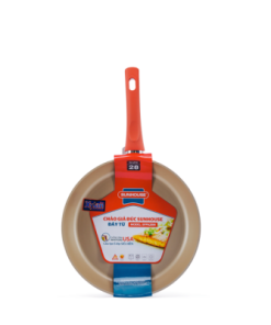 - Kiểu dáng hiện đại, màu sắc tươi sáng: Bề mặt bên ngoài chảo tráng lớp sơn chịu nhiệt màu cam sáng bóng, hạn chế trầy xước và bám bẩn. Lòng chảo phủ chống dính màu vàng cát đem lại tổng thể tươi sáng, phù hợp với không gian bếp trẻ trung.