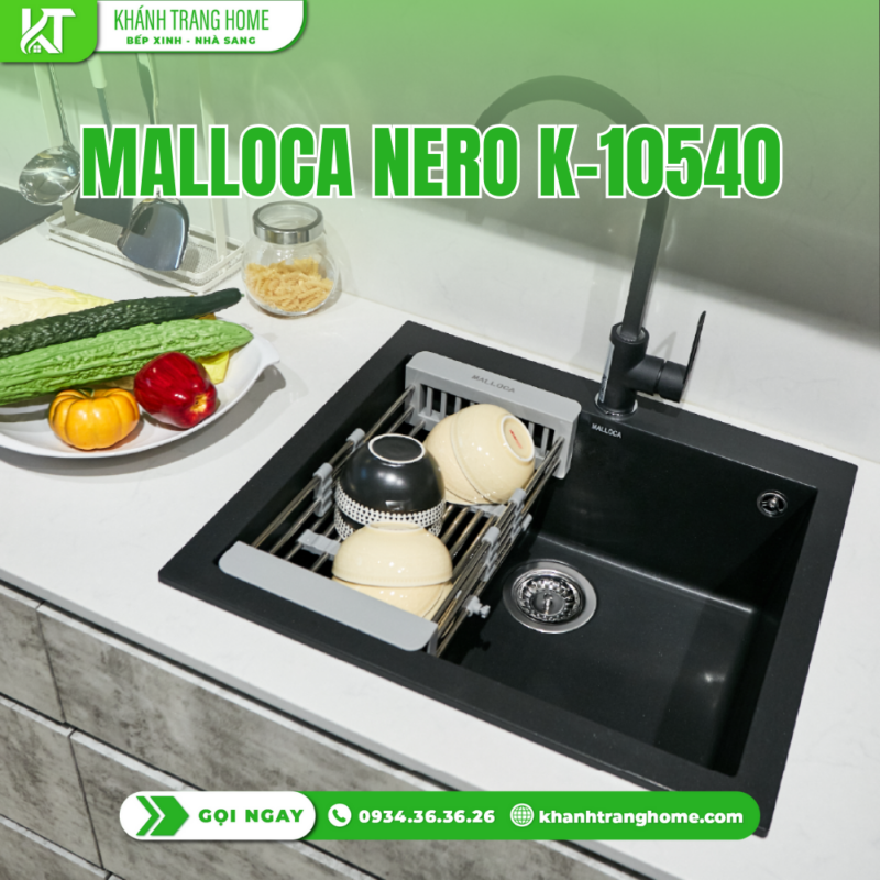- Chậu đá Malloca Nero K-10540 là dòng chậu rửa cao cấp được thiết kế dành riêng cho những không gian bếp hiện đại, đề cao cả yếu tố thẩm mỹ lẫn độ bền sử dụng lâu dài. Sản phẩm được chế tạo từ đá granite cao cấp, có kết cấu đặc chắc, giúp chậu đạt khả năng chống trầy xước, chống va đập và chịu nhiệt cao, hạn chế nứt vỡ hay biến dạng trong quá trình sử dụng thường xuyên. Đây là ưu điểm lớn đối với các gia đình có tần suất nấu nướng cao.