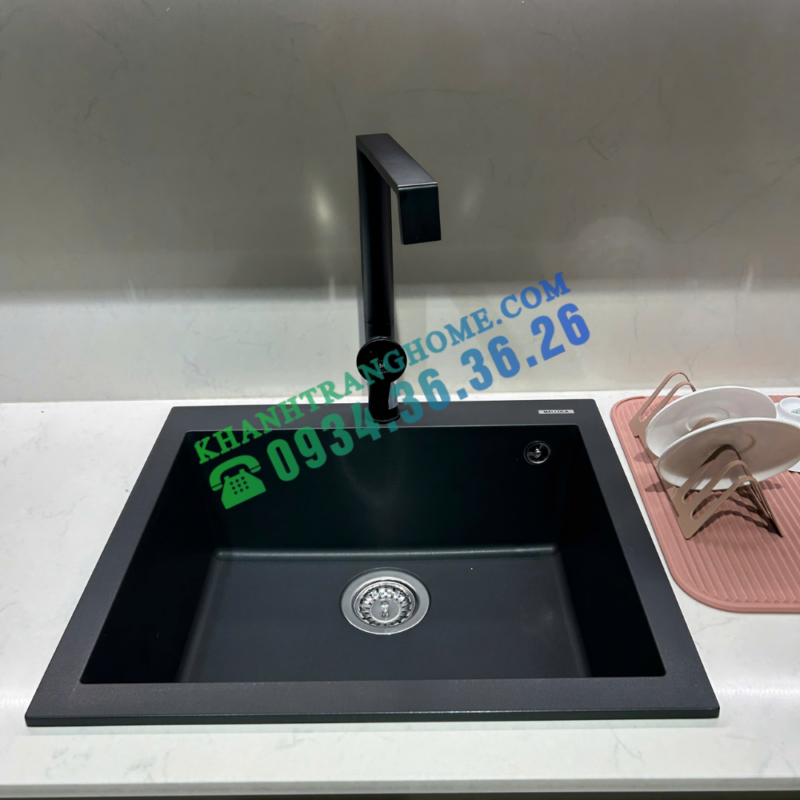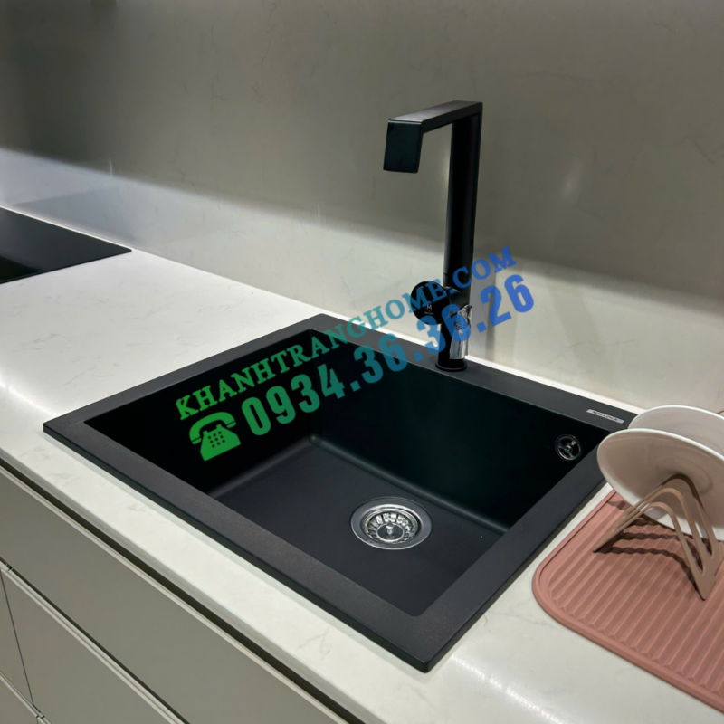- Về thiết kế, chậu sở hữu 1 hố rửa rộng rãi với lòng chậu sâu, tạo sự thoải mái khi rửa nồi chảo kích thước lớn, sơ chế thực phẩm hay vệ sinh dụng cụ bếp. Thiết kế này còn giúp hạn chế bắn nước ra ngoài, giữ mặt bếp luôn khô ráo và gọn gàng. Gam màu đen sang trọng mang phong cách hiện đại, dễ dàng phối hợp với nhiều kiểu tủ bếp và mặt đá khác nhau, đồng thời giữ màu bền đẹp theo thời gian.