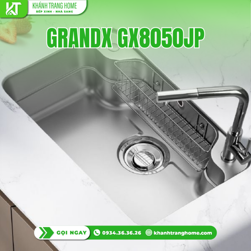 - GrandX GX8050JP Hikari mang lại cảm giác chắc chắn và ổn định ngay từ lần đầu sử dụng. Khi rửa nồi lớn hay sơ chế nhiều thực phẩm, chậu đứng vững, không rung lắc, tạo sự an tâm hơn so với các mẫu mỏng trên thị trường.