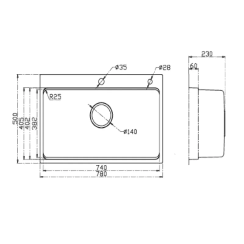- Thiết kế tiêu chuẩn, dễ lắp đặt: Kích thước 780 x 500 x 220 mm phù hợp với nhiều kiểu tủ bếp phổ thông, mang lại sự linh hoạt trong thiết kế không gian bếp.