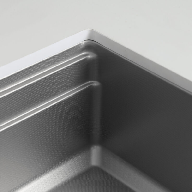 - Chậu được chế tác từ Inox POSCO 304 cao cấp của Hàn Quốc, bền chắc, an toàn và chống gỉ sét. Bề mặt hoàn thiện dạng Linen dập nổi giúp chống xước, chống bám dầu mỡ, dễ vệ sinh và giữ được vẻ sáng bóng lâu dài. Với công nghệ ép liền khối Seamless Technology, sản phẩm có độ hoàn thiện cao, không kẽ hở, đảm bảo tính thẩm mỹ và vệ sinh tối đa.