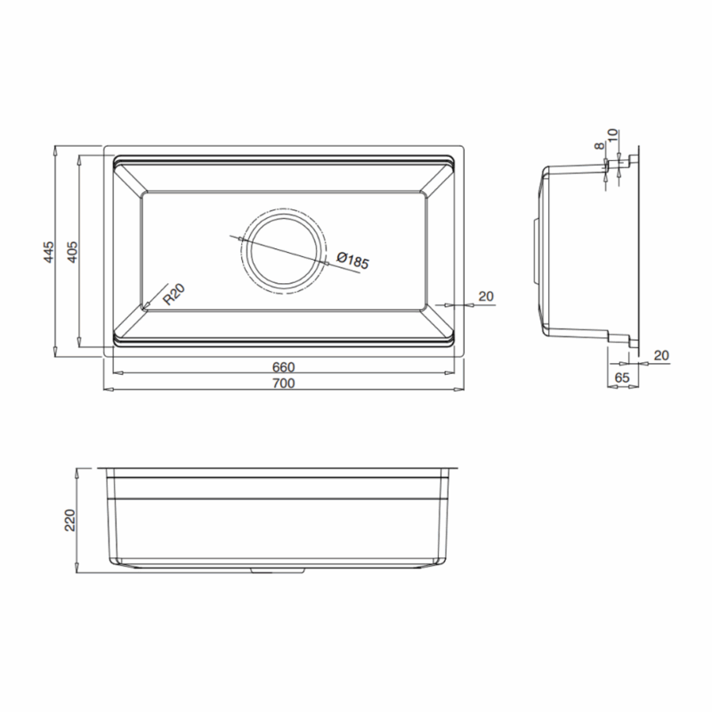 - Âm bàn (Under Mount): W660 x D425 mm (R20)