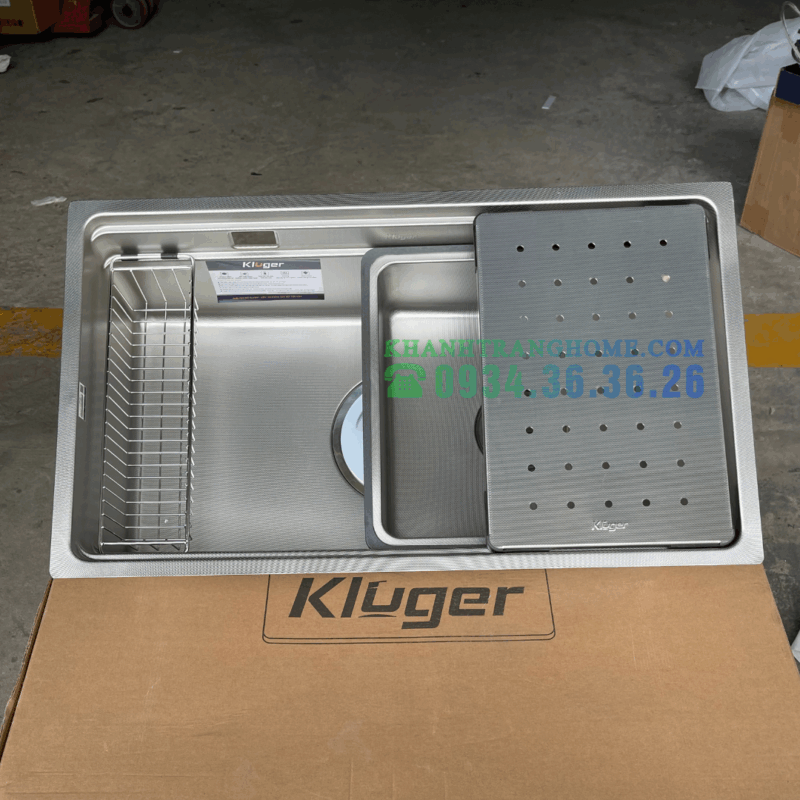 - Chậu rửa bát KLUGER KG7644FS PLUS là mẫu chậu cao cấp thuộc bộ sưu tập K600 Series – “Đa chức năng với thiết kế cải tiến”, được xem như giải pháp bếp toàn diện cho gia đình hiện đại. Với kích thước rộng rãi 760 x 445 x 220 mm, thiết kế 1 hố liền khối, chậu mang lại sự thoải mái khi rửa xoong nồi cỡ lớn, đồng thời giữ cho căn bếp gọn gàng và tiện nghi.
