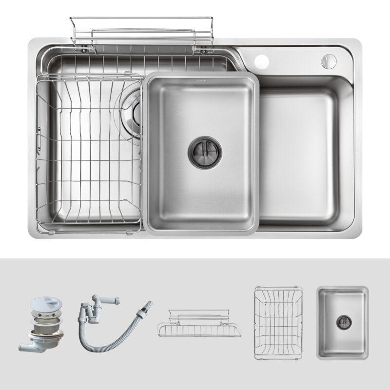 - Đi kèm theo sản phẩm là Siphon Z Slim thế hệ mới kiểu Nhật, giúp tiết kiệm tối đa không gian tủ bếp, cùng bộ phụ kiện đồng bộ như giỏ inox, chậu nhỏ và thớt tiện dụng. Nhờ đó, Chậu rửa bát KLUGER KH8048SL-S80 Plus không chỉ là một chiếc chậu rửa bát thông thường mà còn là giải pháp đa năng, tối ưu không gian và nâng tầm trải nghiệm bếp hiện đại.