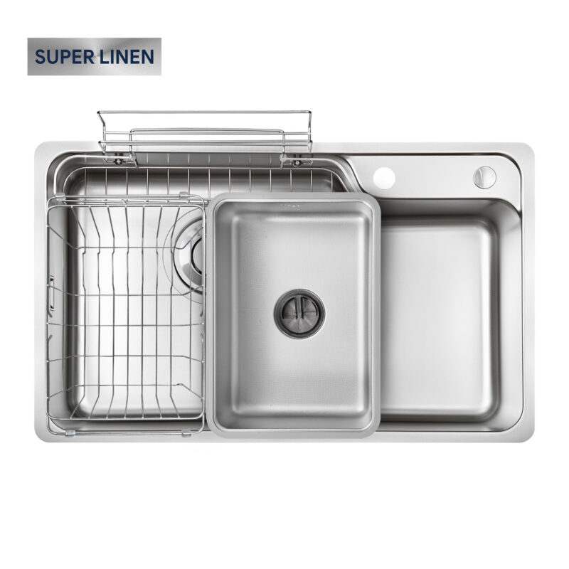 - Với lòng chậu sâu 210mm rộng rãi, người dùng dễ dàng rửa xoong nồi, chảo cỡ lớn mà không lo nước bắn tung tóe. Ngoài ra, bộ phụ kiện đi kèm như giỏ inox, chậu nhỏ, thớt… mang đến giải pháp đa năng, giúp căn bếp thêm gọn gàng và tiện lợi.