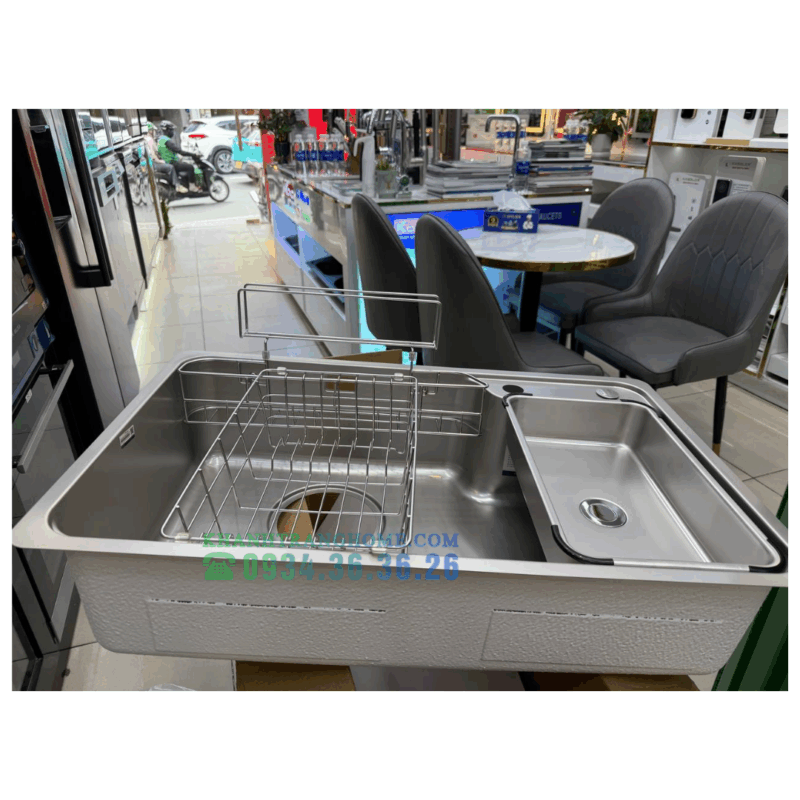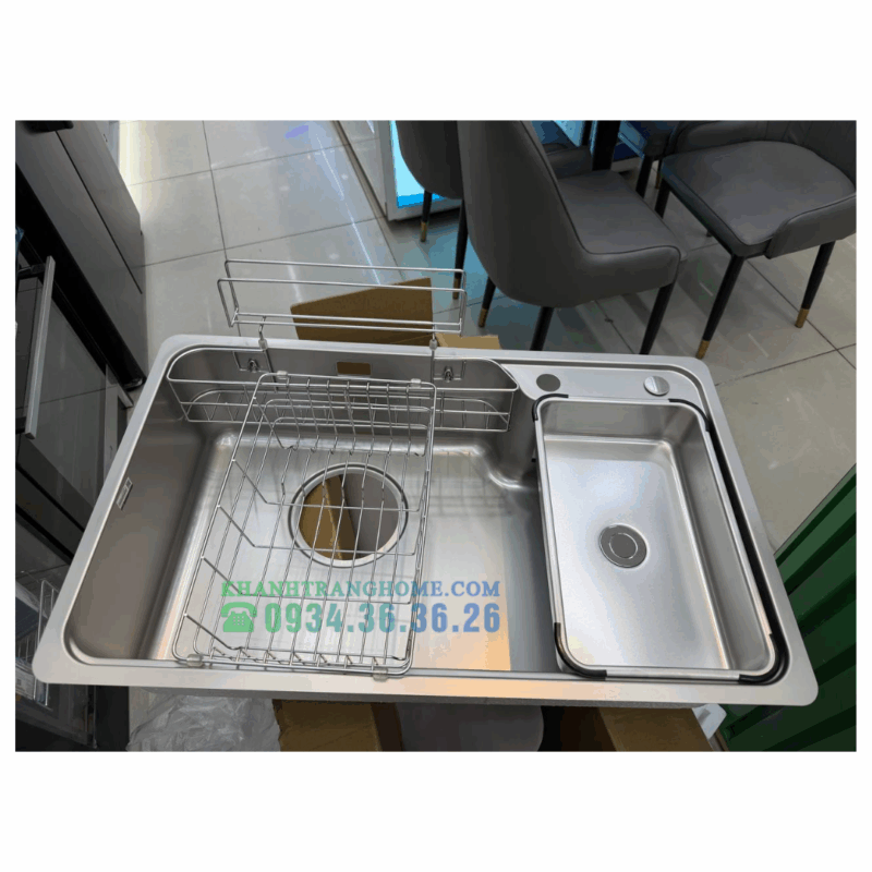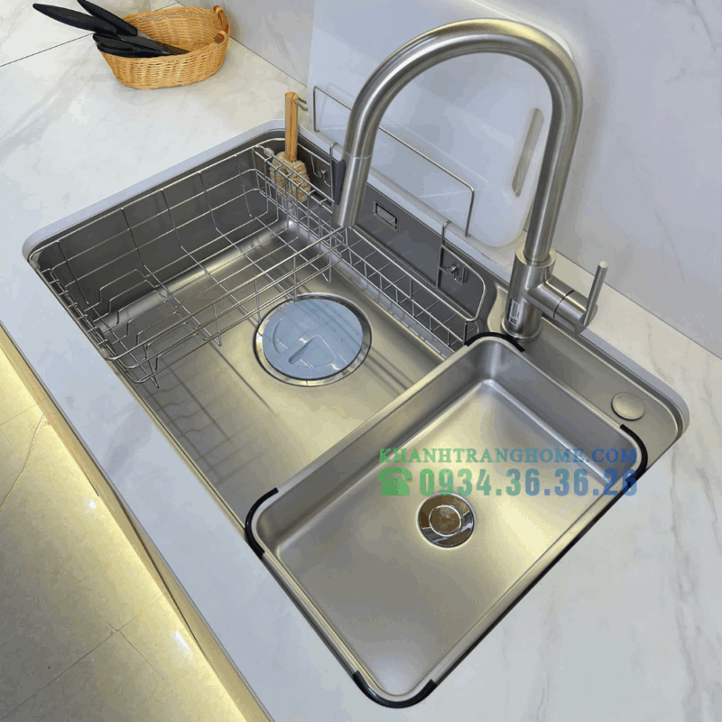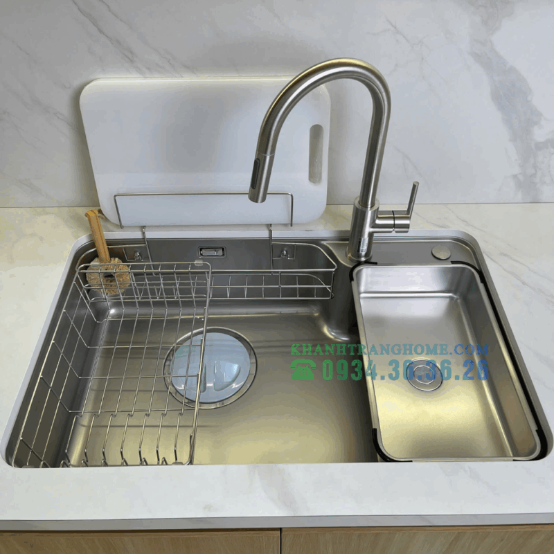 - Phụ kiện đồng bộ đi kèm: Giỏ inox, thớt, chậu nhỏ phụ… giúp thao tác trong bếp gọn gàng, linh hoạt.