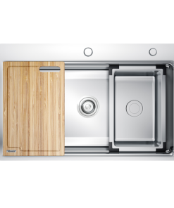 - Đa Năng Và Tiện Ích: Dòng chậu hạ bậc KONOX KN7650TS không chỉ là một nơi để rửa bát mà còn tích hợp các công năng khác như thớt gỗ, rollmat và chậu rửa nhỏ, giúp tối ưu hóa không gian và tiện lợi trong quá trình nấu ăn và làm sạch.