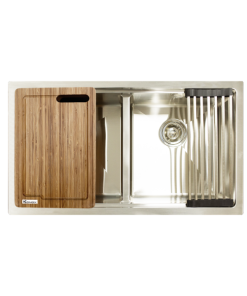 - Thiết Kế Hạ Bậc Tích Hợp Công Năng: Với dòng chậu hạ bậc độc đáo, KN8046DUB tích hợp nhiều công năng như thớt gỗ và rollmat, tối ưu hóa không gian bếp và mang lại sự tiện lợi trong việc chuẩn bị thực phẩm.