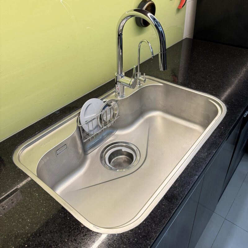 - Phụ kiện đầy đủ, tiện lợi: Đi kèm siphon chống mùi, giá úp bát, thớt nhựa, rổ phụ – hỗ trợ công việc rửa và sơ chế thực phẩm một cách hiệu quả.