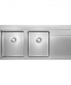 - Với kích thước 1160 x 520mm, thiết kế hai hố rửa rộng rãi kèm bàn chờ giúp tối ưu khả năng sử dụng, tạo sự thuận tiện trong quá trình sơ chế và vệ sinh thực phẩm. Độ sâu 215mm giúp hạn chế tình trạng nước bắn ra ngoài, giữ cho khu vực bếp luôn khô ráo và sạch sẽ.