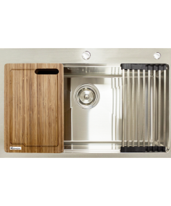 - Dòng Chậu Hạ Bậc với Công Năng Tích Hợp: Chậu thuộc dòng hạ bậc và được tích hợp nhiều công năng tiện ích như thớt gỗ và rollmat. Điều này giúp tối ưu hóa không gian và tiện lợi trong việc sử dụng.