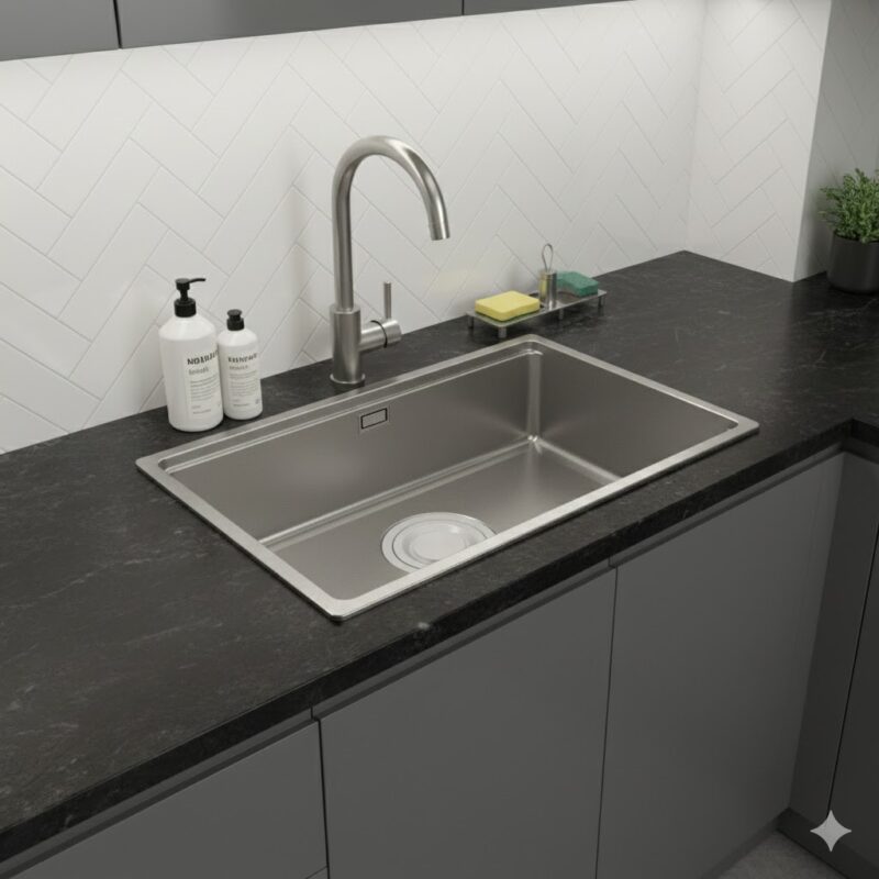 - Chậu được chế tạo từ inox 304 chất lượng cao, mang đến độ bền vượt trội, chống oxi hóa và ăn mòn trong môi trường ẩm ướt của bếp.