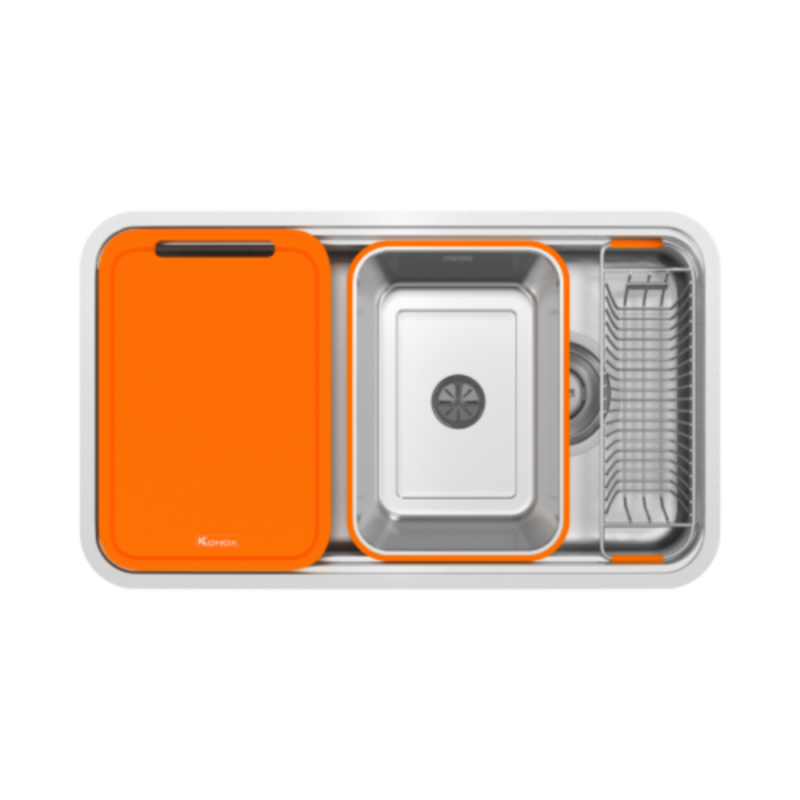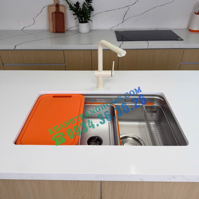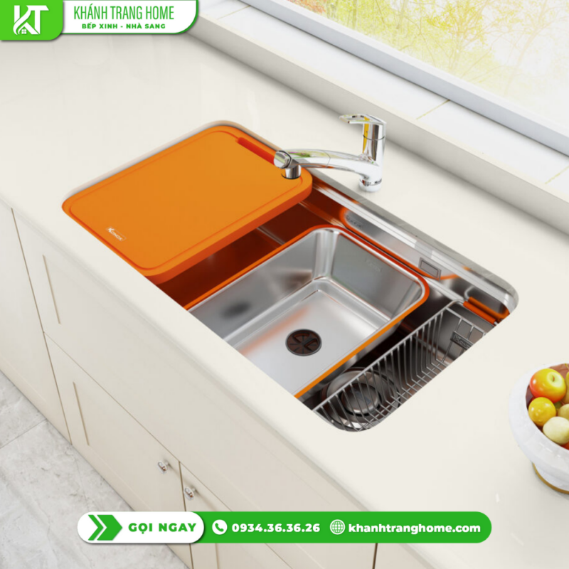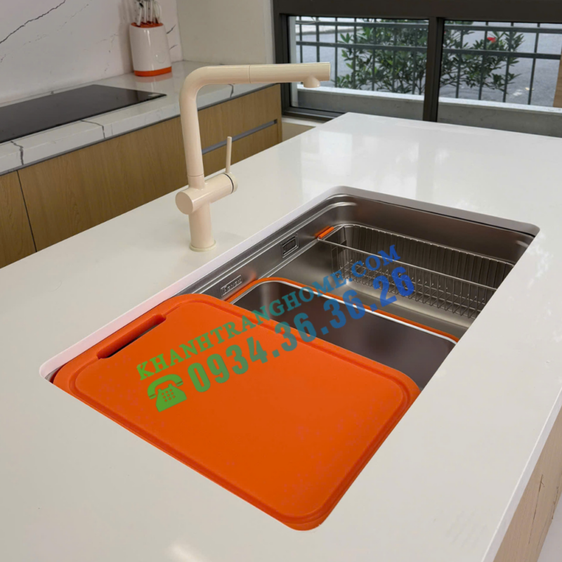 - Full phụ kiện đi kèm – tối ưu công năng sử dụng: Bao gồm thớt nhựa, colander và rổ phụ, đáp ứng trọn vẹn nhu cầu sơ chế và dọn rửa hằng ngày, giúp khu vực bếp luôn gọn gàng.