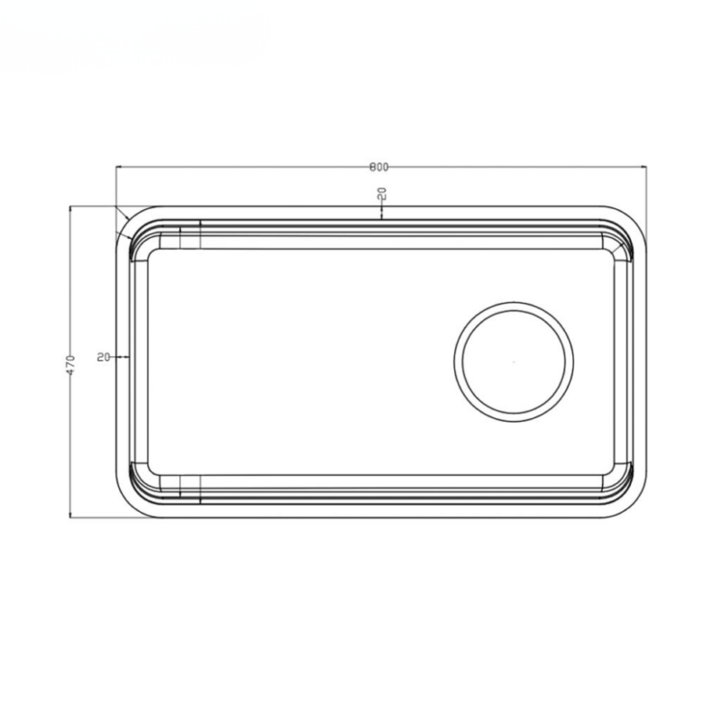 - Kiểu chậu: Chậu rửa inox 1 hố, bo góc R50