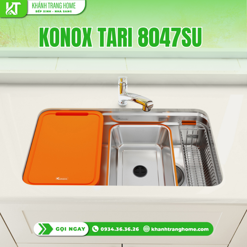 - Chậu rửa chén KONOX Tari 8047SU là lựa chọn nổi bật trong phân khúc chậu rửa inox cao cấp, phù hợp với các không gian bếp hiện đại yêu cầu cao về cả thẩm mỹ lẫn công năng. Sản phẩm thuộc Tari Series, mang phong cách thiết kế Nhật Bản tối giản, tinh tế, dễ dàng kết hợp với nhiều kiểu nội thất bếp từ căn hộ chung cư đến nhà phố.