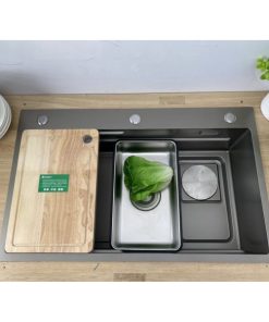- Màu sắc đen độc đáo tạo nên một phong cách riêng biệt cho sản phẩm, đồng thời mang lại cảm giác sang trọng và hiện đại cho không gian bếp. Không chỉ là một công cụ hữu ích, chậu rửa chén còn là một phần trong trang trí nội thất tinh tế.