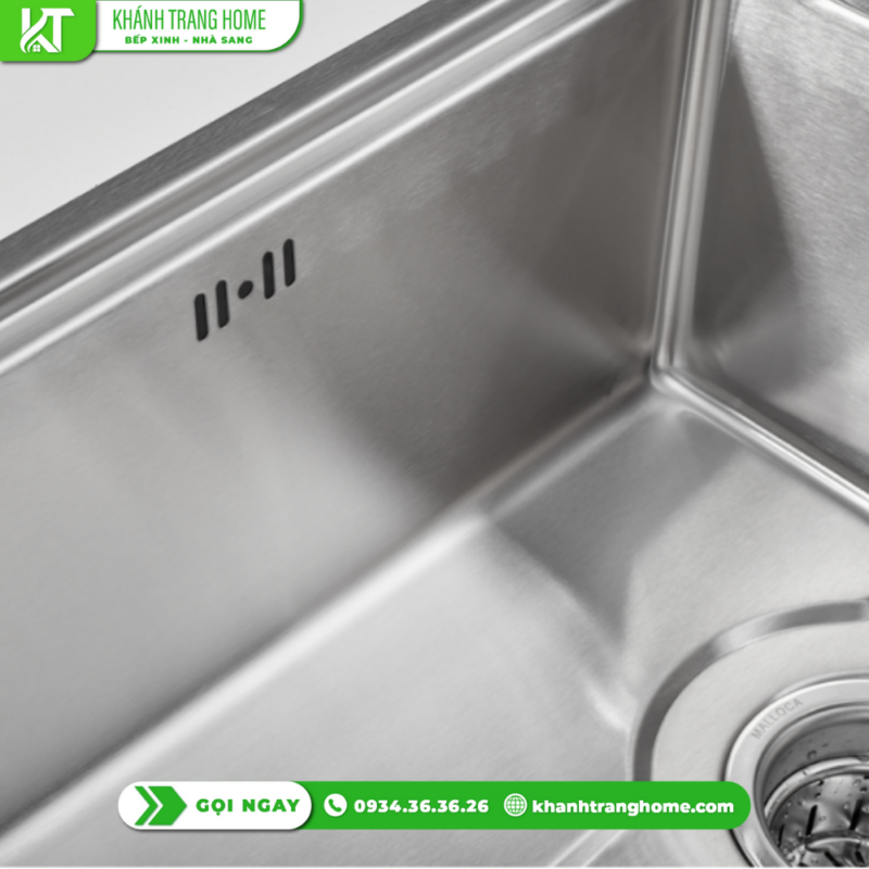 Bề mặt inox xước không chỉ mang lại vẻ ngoài sang trọng cho không gian bếp mà còn hạn chế trầy xước, bám bẩn, giúp việc lau chùi trở nên nhanh chóng và dễ dàng. - Rổ lọc rác inox tiện lợi, giữ bồn luôn sạch sẽ