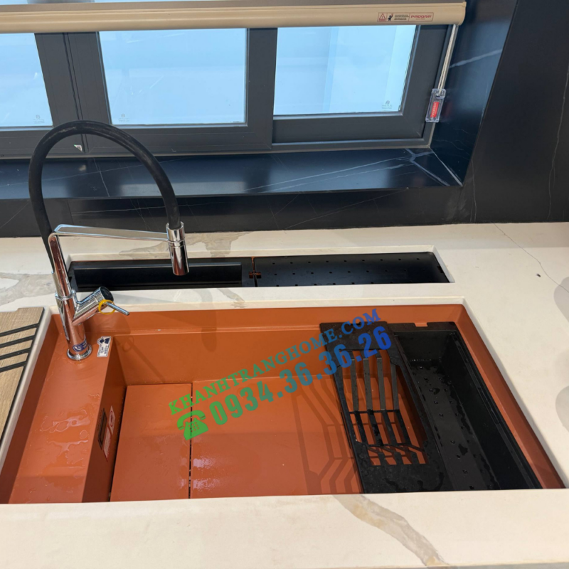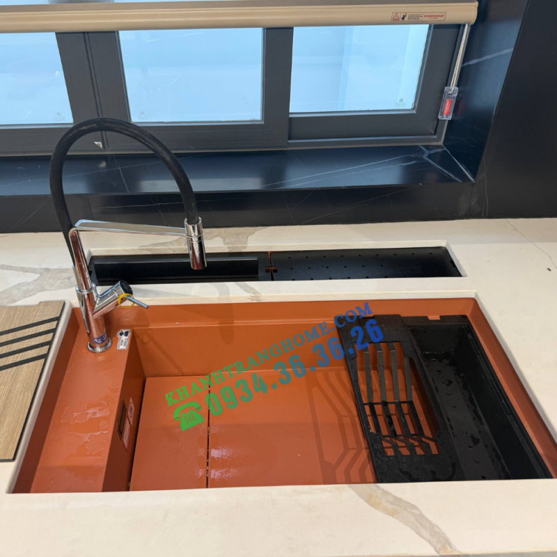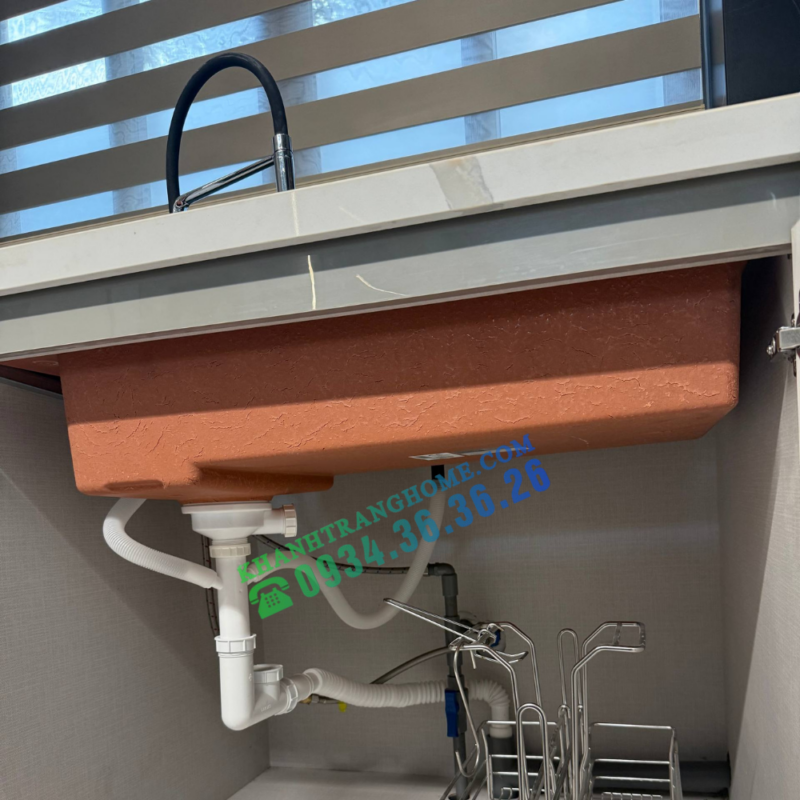 - Chất liệu Đá Granite và Màu sắc cá hồi: Chậu được làm từ đá Granite tự nhiên, màu sắc cá hồi mang lại vẻ đẹp tự nhiên và thẩm mỹ cho không gian bếp.