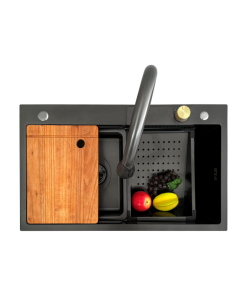 - Kích thước rộng rãi (750mm x 450mm x 220mm) cùng với thiết kế vòi âm tinh tế giúp tối ưu hóa không gian bếp và tạo nên vẻ trang nhã. Bạn có đủ không gian để làm việc một cách thoải mái, từ xử lý thực phẩm đến chế biến món ăn và rửa chén. Thiết kế vòi âm còn tạo nên sự gọn gàng, tạo điểm nhấn tinh tế cho không gian bếp.