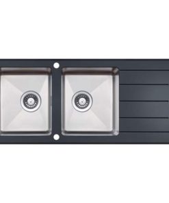 Chậu rửa chén Elio 2B Inox mặt kính đen 2 hộc cân bằng, 1 cánh.