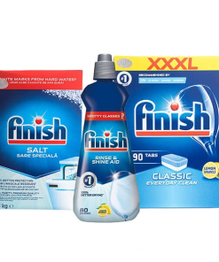 Viên rửa chén Finish giúp cho chén đĩa luôn luôn sạch bóng. Với công nghệ enzyme đặc biệt giúp diệt khuẩn, loại bỏ bụi bẩn, dầu mỡ, vết bẩn khô thậm chí là vết cháy trên xoong nồi, chén đĩa, các đồ sành sứ, thủy tinh, inox và các dụng cụ nhà bếp. Hộp 90 viên rửa chén Finish Classic (là viên rửa chén cao cấp chuyên dùng cho máy rửa chén).