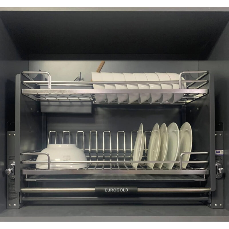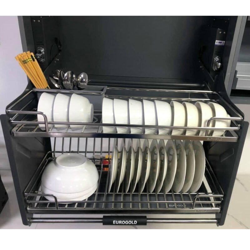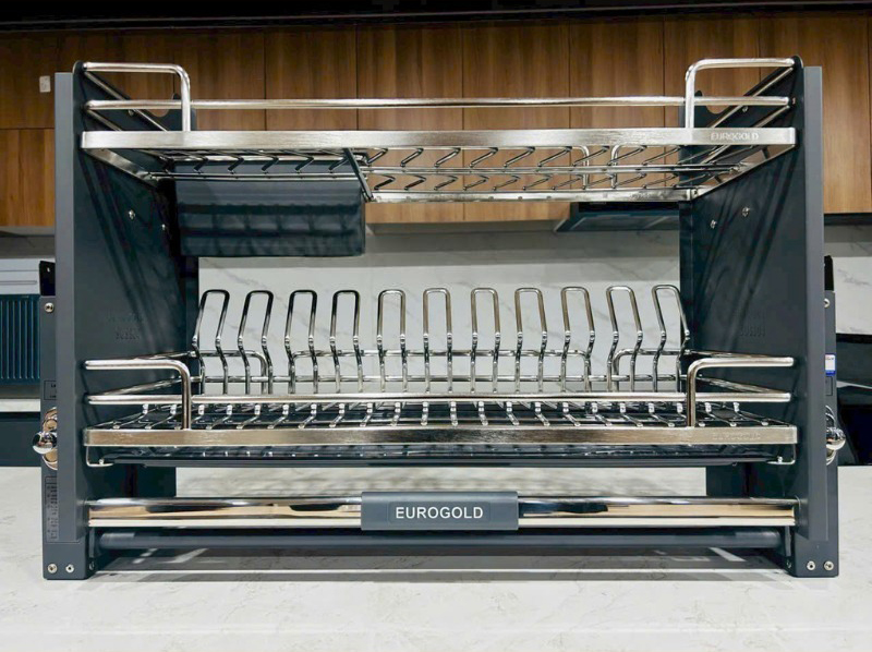 - Eurogold EPO9370LX sở hữu hệ ray giảm chấn cao cấp, giúp thao tác nâng lên hạ xuống diễn ra êm ái, nhẹ nhàng và an toàn. Khả năng chịu tải lớn đảm bảo giá bát vận hành ổn định ngay cả khi chứa nhiều bát đĩa. Nhờ đó, sản phẩm mang lại cảm giác chắc chắn và tin cậy trong quá trình sử dụng lâu dài.