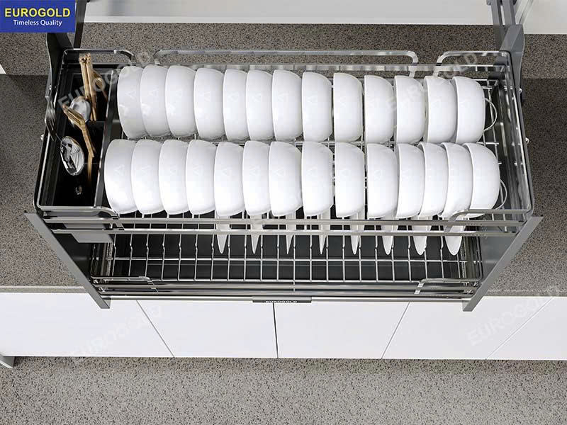 Giá bát đĩa di động nan dẹt Eurogold EVI960LG được thiết kế chuẩn cho tủ rộng 600mm, giúp khai thác tối đa diện tích lưu trữ mà vẫn giữ sự gọn gàng cho khu vực bếp. Cách bố trí khoa học cho phép sắp xếp bát, đĩa, chén hằng ngày một cách ngăn nắp, dễ lấy và dễ cất. Nhờ đó, không gian bếp trở nên thoáng đãng, tiện nghi và phù hợp với nhịp sống hiện đại. - Thiết kế gọn gàng, hiện đại, dễ phối nội thất