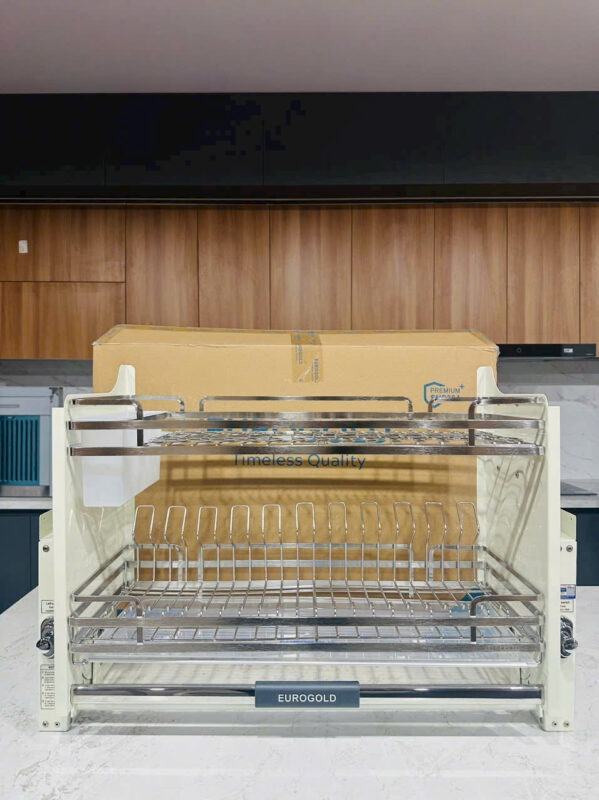- Sản phẩm sử dụng nan dẹt inox 304 cao cấp, nổi bật với khả năng chống gỉ sét và độ bền cao trong môi trường bếp ẩm. Kết cấu chắc chắn giúp bát đĩa được sắp xếp ổn định, hạn chế xô lệch trong quá trình kéo trượt. Đây là yếu tố quan trọng giúp Eurogold EVI970LW đảm bảo độ bền và sự an tâm khi sử dụng lâu dài.