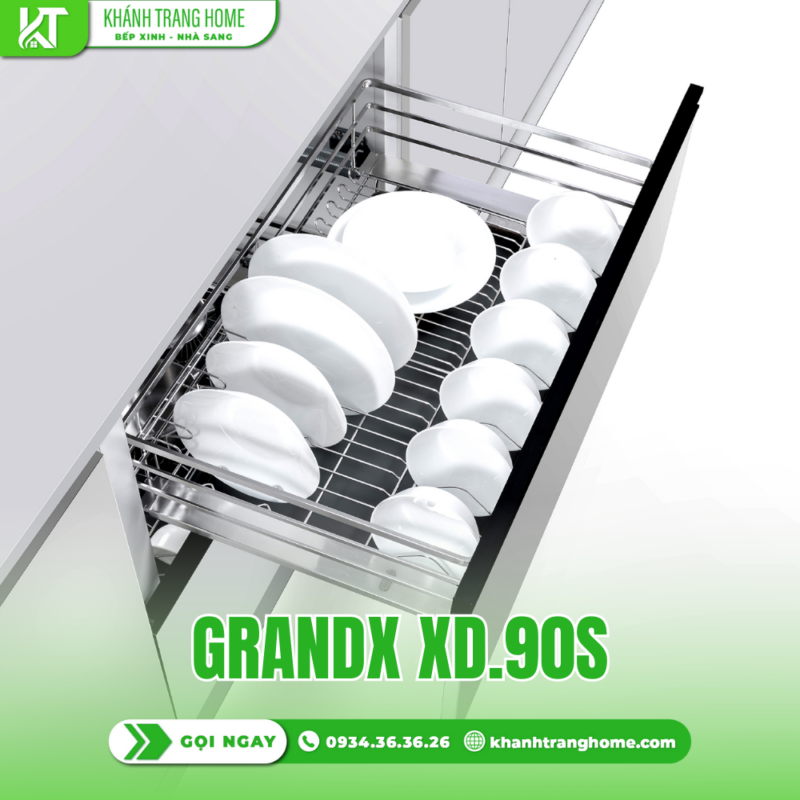 - Nếu bạn đang tìm kiếm một giá bát đĩa bền đẹp, hiện đại và tối ưu không gian, thì GrandX XD.90S chính là một trong những lựa chọn hàng đầu. Sản phẩm được thiết kế với kết cấu 2 in 1, cho phép sử dụng linh hoạt với cả tủ cánh mở và cánh chéo, giúp phù hợp với nhiều kiểu dáng tủ bếp. Với kích thước lọt lòng tủ 864mm, sản phẩm dễ dàng lắp đặt mà vẫn đảm bảo tính thẩm mỹ cao.