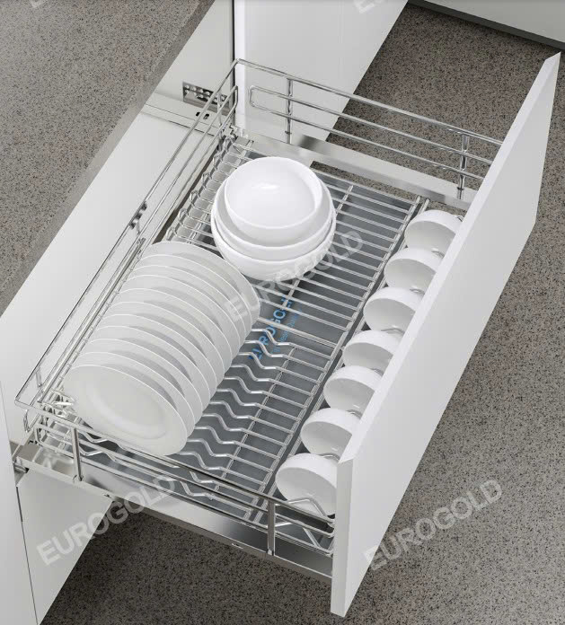 Hệ thống ray trượt giảm chấn cao cấp cho khả năng đóng mở nhẹ nhàng, êm ái và hạn chế tiếng ồn. Ray chịu tải lớn giúp lưu trữ nhiều bát đĩa cùng lúc mà vẫn đảm bảo độ ổn định và an toàn. Mang lại trải nghiệm sử dụng mượt mà và bền bỉ theo thời gian. - Linh hoạt lắp đặt – Dễ vệ sinh, an toàn khi sử dụng