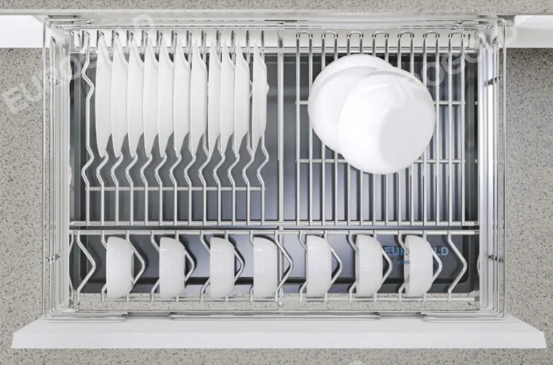 Giá bát đĩa nan Oval Eurogold EPO7380VX được thiết kế dành riêng cho khoang tủ 800mm, giúp khai thác tối đa diện tích lưu trữ trong bếp. Cách bố trí khoa học hỗ trợ sắp xếp bát đĩa gọn gàng, dễ quan sát và thao tác nhanh khi sử dụng hằng ngày. Nhờ đó, không gian bếp luôn ngăn nắp và tiện lợi hơn. - Thiết kế âm tủ gọn gàng, hiện đại