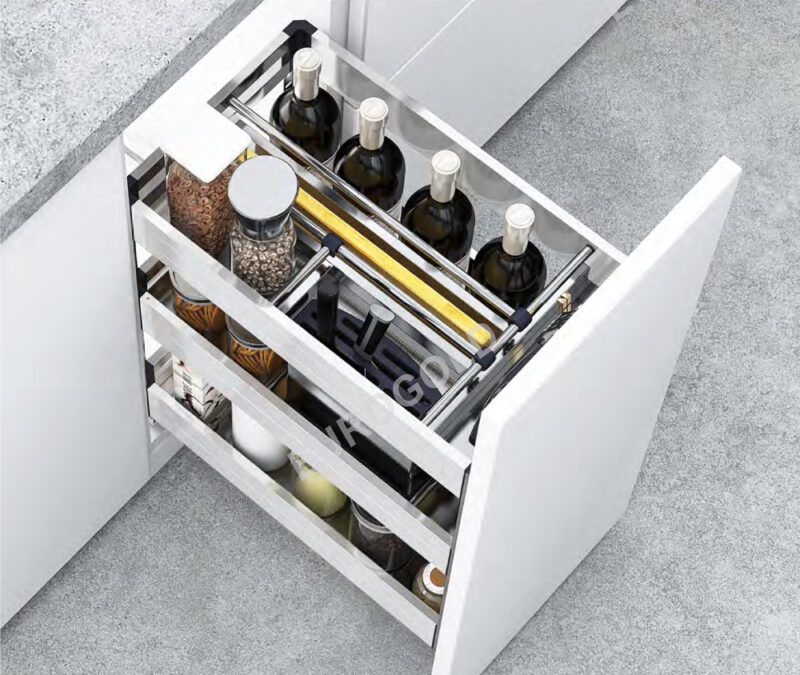 - Về công năng, Eurogold EUB5530 đáp ứng tốt nhu cầu sắp xếp dao, thớt và nhiều loại chai lọ với tải trọng ổn định. Các tầng được thiết kế hợp lý, hạn chế va chạm giữa các vật dụng, giúp việc nấu nướng diễn ra nhanh gọn và an toàn hơn. Đây là giải pháp lưu trữ hiệu quả cho những căn bếp cần tối ưu không gian.