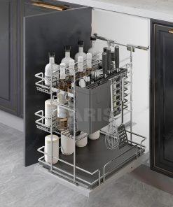 - Sản phẩm được thiết kế với tính năng ray trượt giảm chấn, giúp hoạt động mở và đóng một cách nhẹ nhàng, không gây tiếng ồn và tăng độ an toàn. Khả năng chịu tải trọng được nâng cao, cùng với tính thẩm mỹ và sự nhỏ gọn, giúp sản phẩm trở thành một giải pháp hiệu quả cho việc sắp xếp và lưu trữ đồ dùng bếp.