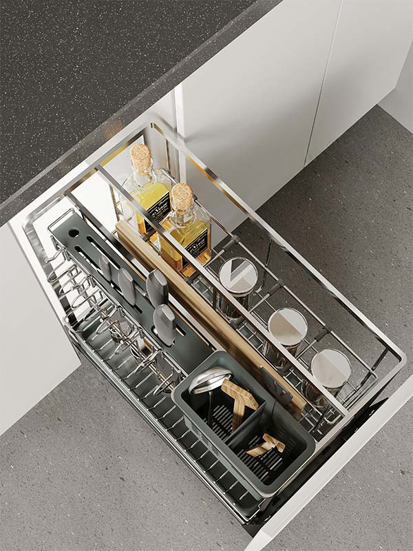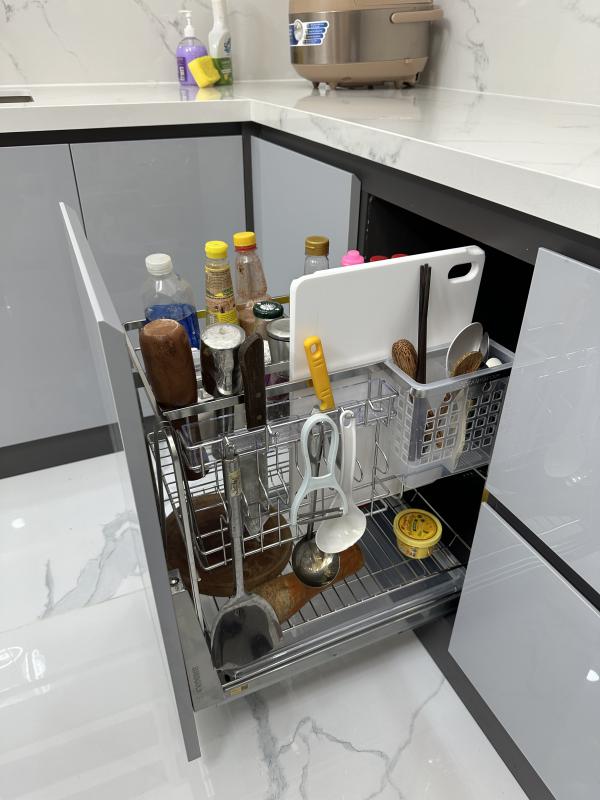 Kiểu nan dẹt mang đến cảm giác cứng cáp, tăng khả năng chịu lực và hạn chế cong vênh trong quá trình sử dụng. Khung giá được gia công tỉ mỉ, kết cấu vững chắc giúp sản phẩm vận hành ổn định, không rung lắc khi kéo mở. Thiết kế hiện đại dễ dàng hòa hợp với nhiều phong cách nội thất bếp khác nhau. - Dễ lắp đặt, thuận tiện khi sử dụng