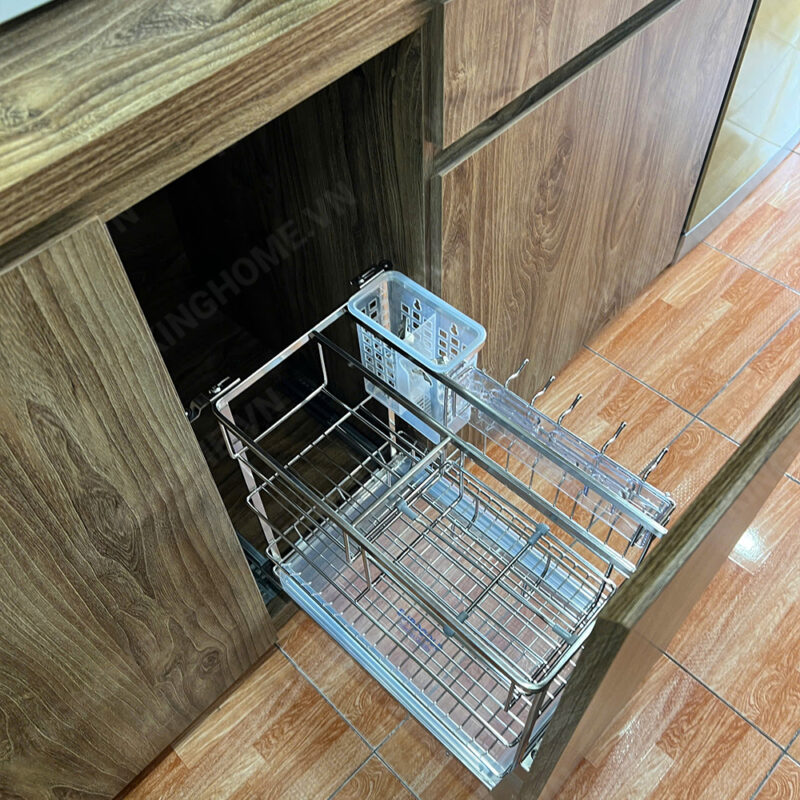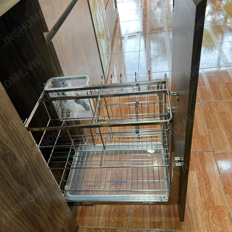 Thiết kế 2 tầng giúp phân chia không gian lưu trữ rõ ràng, hỗ trợ sắp xếp và phân loại vật dụng bếp một cách hợp lý. Dao, thớt và gia vị được bố trí ngăn nắp, dễ quan sát và dễ lấy khi cần. Điều này giúp tiết kiệm thời gian thao tác và nâng cao hiệu quả nấu nướng. - Lắp đặt đơn giản, nâng tầm tiện nghi cho căn bếp