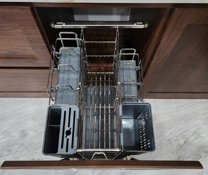 - Sản phẩm được chế tạo từ inox 304 cao cấp với khung chắc chắn và nan Oval tinh tế, đảm bảo khả năng chống gỉ sét, chịu lực tốt và bền bỉ theo thời gian. Chất liệu inox an toàn, sáng bóng không chỉ phù hợp với môi trường ẩm ướt mà còn giúp không gian bếp luôn sạch sẽ, sang trọng.