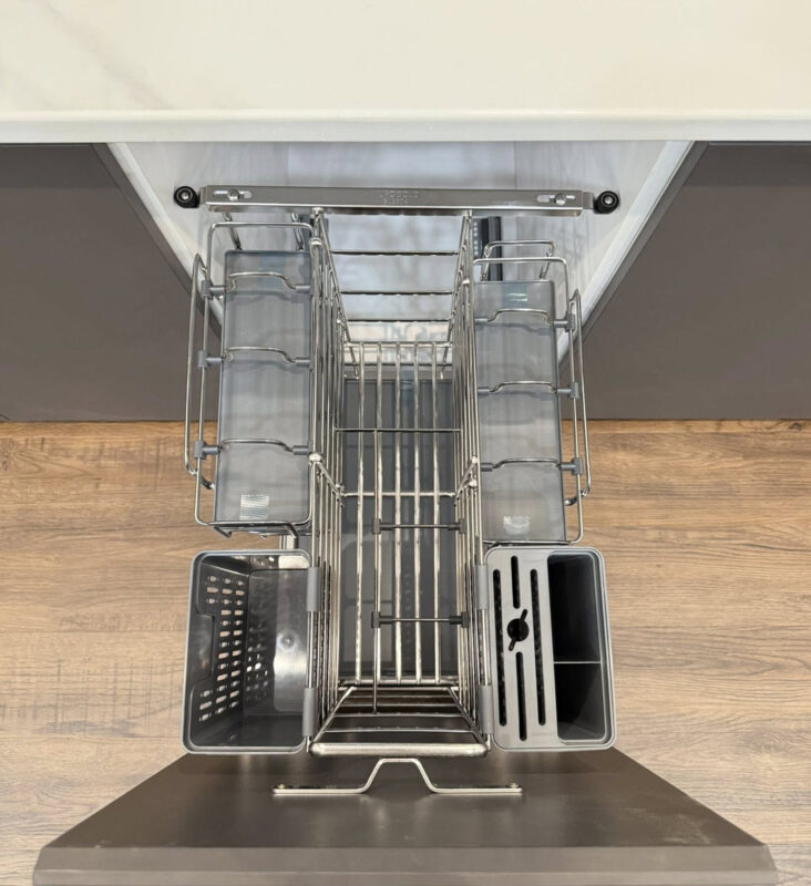 - Giá dao thớt nan Oval Eurogold EPO4340VX sở hữu thiết kế âm tủ hiện đại, lắp đặt gọn gàng trong khoang tủ dưới 400 mm, giúp tối ưu không gian bếp hiệu quả. Kích thước W364D475H570 được tính toán hợp lý, vừa vặn với nhiều hệ tủ bếp phổ biến, mang lại sự ngăn nắp và thuận tiện trong quá trình sử dụng hằng ngày.